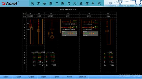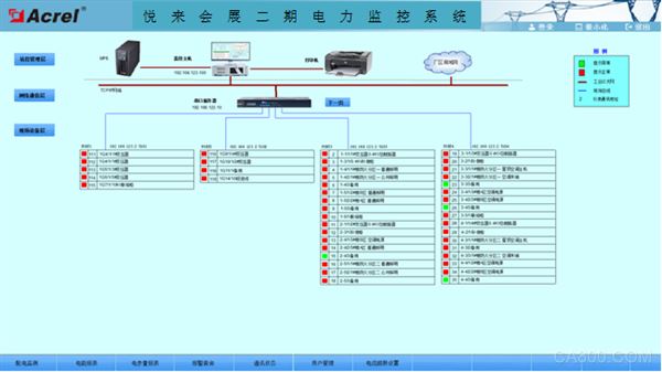 With the development of society and the widespread use of electricity, power monitoring systems have become an essential choice for large-scale multi-substation users, such as key construction projects, landmark buildings, and large public facilities across the country. The Acrel-2000 power monitoring system introduced in this paper has been applied in the second phase of the Chongqing Yuelai Convention and Exhibition Center. It enables real-time monitoring and power management of low-voltage distribution circuits in the substation. It not only displays the power status of the distribution circuit but also has network communication capabilities, uploading electricity data to the next-level platform. The system analyzes and processes the collected data, displaying the real-time status of each distribution circuit in the substation. It includes pop-up alarm dialog boxes and voice prompts for load changes, and generates various energy reports and analysis curves, graphs, etc., to facilitate remote meter reading and analysis. The system is safe, reliable, and stable, providing real and reliable basis for users to solve electricity problems and achieving good social benefits.